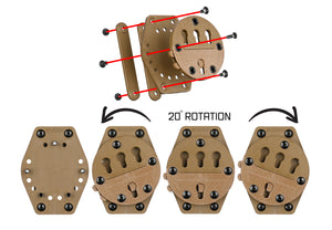 Der RTI Battle Belt MOLLE Adapter wird an den normalen Dienstgurt oder einem Molle Belt angebracht und ist eine flache Plattform, welche sich perfekt zur Befestigung von Holstern am Gurt eignet. Der RTI Battle Belt Adapter kann in gerader Position angebracht werden oder in beiden verschiedenen 20° Degree Positionen. Hier müssen nur die Schrauben gelöst werden und die gewünschte Positionen eingestellt werden. Benötigt wird hierfür noch der entsprechende G-Code RTI Hanger, sei es für Safariland- oder SERPA-Holster, etc. Diese finden Sie natürlich ebenfalls im G-Code Markenshop.
