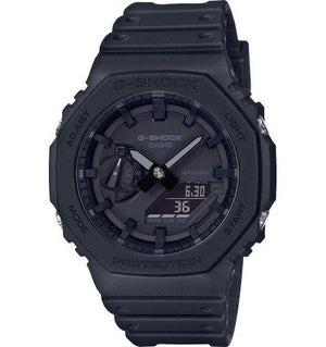 Die G-Shock Classic GA-2100-1A1ER beeindruckt nicht nur mit ihrem zurückhaltend attraktiven schwarz-in schwarz Design, sondern auch mit einer dezent verpackten Vielzahl an Funktionen, die intuitiv abzurufen sind. Die Uhr, die ein analoges Ziffernblatt mit digitalen Anzeigen vereint ist für all die ideal, die einen klassischen Look schätzen und nicht auf die Funktionalität einer Digitaluhr verzichten möchten. In diesem Sinne ist die G-Shock Classic GA-2100-1A1ER definitiv mehr als nur ein praktikables Stück, sondern durchaus auch eine ansehnliche Uhr für besondere Anlässe.