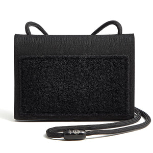 Durch das Lasercut-Design wird Material (v.a. Einfassband) eingespart und damit das Gesamtgewicht reduziert. Dies verleiht dem ID Card Holder statt eines klobigen Looks ein flaches und dezentes Aussehen. Ein Hauptfach mit einem 0,3 mm dickem Sichtfenster aus PVC-Material verstaut Deinen Dienstausweis mit Kreditkarten-Abmessungen sicher, erreichbar über innenliegende Schlitzeinschübe – optimal geeignet für das dienstliche Tragen. In zwei zusätzlichen Fächern kannst Du weitere Karten, Ausweise etc. deponieren. Der ID Card Holder lässt sich komplett klappen und mittels Klett-System verschließen. Die vollflächige Flausch-Klett-Rückseite kannst Du für Patches o.Ä. nutzen. Die Trageschnur aus Paracord besitzt für den Nackenbereich einen schlanken Magnetverschluss (8 mm Durchmesser), wodurch KEINE Strangulationsgefahr besteht. Ein unkompliziertes Öffnen des Paracords zum Abnehmen des Ausweises und ein erneutes Verschließen ist durch den Wiederverschluss problemlos möglich. Der Magnetverschluss kann Spuren von Nickel enthalten.