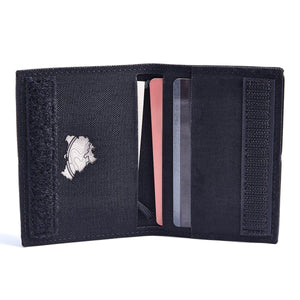 Der flache ID Card Holder, hier in der Farbe Black, ist die smarte Ausweistasche von TERRA B® mit kompakter Abmessung aus robustem CORDURA® 500 den Laminat.