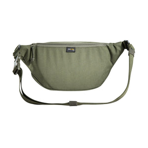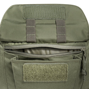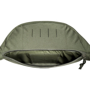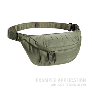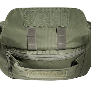 Die Tasmanian Tiger Modular Hip Bag 2, hier in der Farbe Olive, besitzt ein mit MOLLE-Klett versehenes Hauptfach, eine Fronttasche und ein zusätzliches Reissverschlussfach auf der Rückseite. Auf dem Deckel befindet sich eine MOLLE-Leiste in Lasercut-Ausführung. Der Gürtel ist mit einer Sicherheitschnalle gegen ungewolltes Öffnen versehen. Der Gürtel lässt sich abnehmen, um die Tasche mit vorbereiteten Haken an einem Ausrüstungsgürtel einzuhängen.