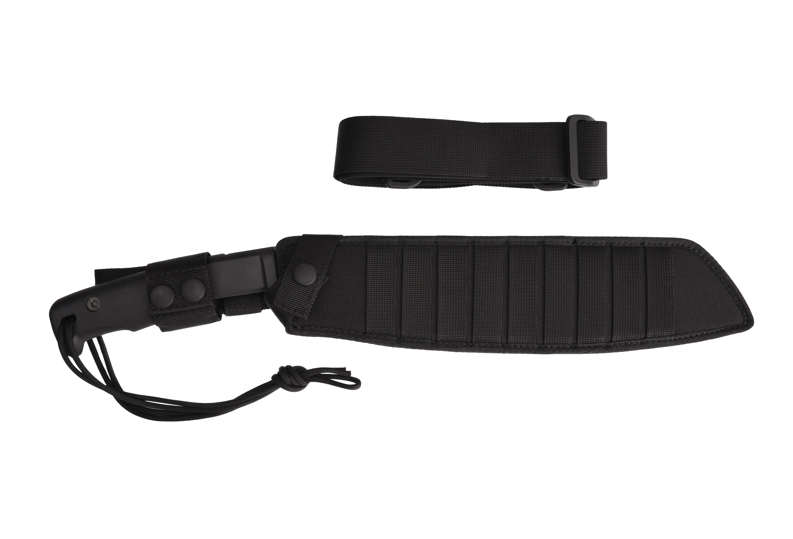 Der Griff aus rutschfestem Forprene-Material sorgt für sicheren Halt und Komfort bei längeren Einsätzen. Die Gesamtlänge beträgt ca. 476 mm, das Gewicht ca. 642 g – ein Werkzeug mit Format. Die Machete wird mit einer hochwertigen Scheide geliefert, die MOLLE-kompatibel ist und vielseitige Tragemöglichkeiten bietet.