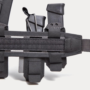 Vielseitige Befestigung: Kompatibel mit dem MOLLE-System und direkt an bis zu 50 mm breiten Gürteln befestigbar. Zusätzliche horizontale Schnitte ermöglichen verschiedene Höhen der Anbringung.