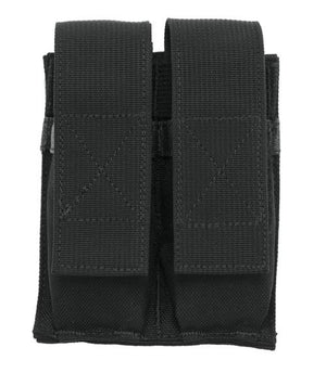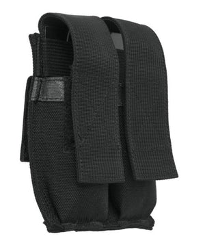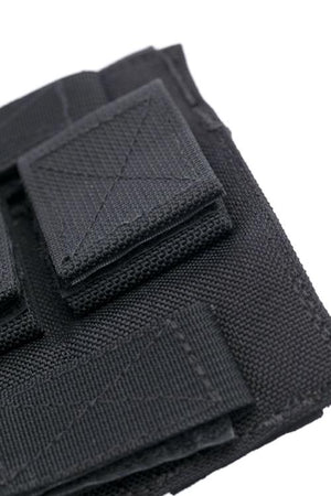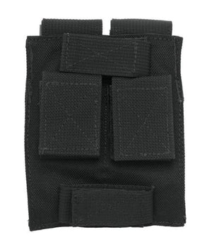 Die Alpine Fox® Doppelmagazintasche aus robustem und abriebfestem Cordura ist eine leichte Variante für das Mitführen von zwei nebeneinander liegenden Magazinen. Die Tasche wird mit Klettschlaufen am Gürtel oder der Ausrüstung befestigt und kann sowohl horizontal als auch vertikal angebracht werden. Die Magazine selbst werden ebenfalls mit einem Klettverschluss in den Pouches gehalten. Die Klappe kann einfach gelöst und das Magazin auch einhändig herausgezogen werden.