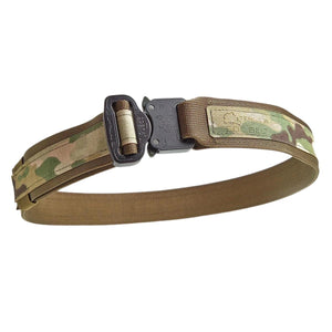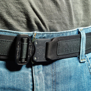 Doppelt genähtes 40 mm Gurtband sorgt für eine gute Stabilität des gesamten Gürtels. Der Materialmix aus Gurtband und CORDURA®-Laminat bricht mit der Eintönigkeit von reinem Gurtband bei sonstigen EDC Belts und verleiht dem Gürtel nicht nur einen besonderen Akzent, sondern ermöglicht die verschiedensten Farbkombinationen – von Multicam über grau bis hin zu limitierten Auflagen mit ganz neuen Farben. Eine festinstallierte Gummibandschlaufe verhindert ein unkontrolliertes Wackeln und Baumeln des Gürtelendes. Bei dem Verschluss setzten wir auf die hochwertige Hybrid-COBRA®-Schnalle von AustriAlpin, wodurch der gesamte Gürtel nochmal zusätzlich aufgewertet wird.