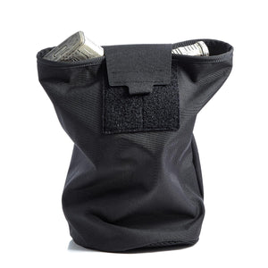 Der abriebfeste und wasserabweisende Abwurfsack misst stolze 27 cm in der Höhe und an die 15 cm im Durchmesser. Dadurch finden ca. neun 5.56 Magazine ihren Platz im Inneren des Dump Pouches. Im gleichen Zug ist der Pouch aber auch auf 13×13 cm zusammen faltbar, falls Du ihn gerade nicht benötigst – grosses Fassungsvermögen trifft auf kleines Packmass! Eine eingearbeitete Versteifung am oberen Rand hält den Pouch beim Beladen offen, sodass ein Einfallen des Sacks verhindert wird. Am Boden begünstigt das robuste Netzgewebe das Abfliessen von Wasser, Sand oder ähnlich kleinen Partikeln, die mit in den Sack geraten sind. Die Rückseite mit PALS-Schlaufen ermöglicht eine Befestigung über das MOLLE-System. Zusätzliche Schlitze auf der Rückseite erlauben die Aufnahme direkt an 45 mm breiten Gürteln.