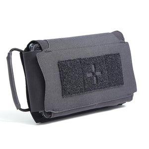 Die Hülle besteht aus robustem CORDURA® 500 den Laminat kombiniert mit einem bi-elastischen Material. Damit ist sie stark abriebfest, wasser- und schmutzabweisend, passt sich aber auch optimal an den Inhalt an und komprimiert das ganze System, sodass nichts verrutscht. Durch rückseitig angebrachte PALS-Schlaufen lässt sich das IFAK sicher an jedem standardisierten MOLLE-System anbringen. Ein rückseitiger 5 cm-Slot ermöglicht alternativ das Anbringen am Gürtel. Damit ist ein fester Sitz gewährleistet und ein Schnellzugriff möglich. Hinter die vordere Flausch-Klettfläche kannst Du die mitgelieferten Reflexfolien schieben, sodass Du die Wahl hast zwischen einer dezenten oder einer auffälligeren Trageweise.