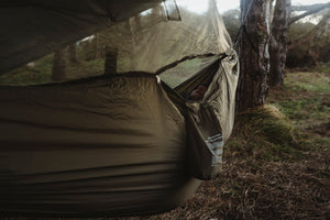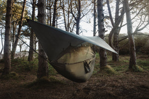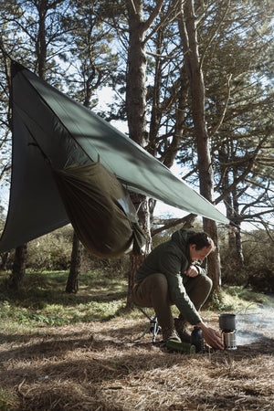 Die Crusader-Hängematte hat alles, was Sie für eine mückenfreie und komfortable Nachtruhe im Freien brauchen. Mit einem Moskitonetz und einer wasserdichten Plane bietet dieses robuste Hängematten-Set Schutz vor Regen, Insekten und anderen Tieren. Perfekt für unwegsames Gelände oder Dschungelbedingungen.