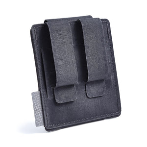 Der Handcuff Pouch verstaut Deine Handfesseln sicher, körpernah und lautlos an Deiner Einsatzweste oder am Gürtel. Das Lasercut-Design verleiht dem Pouch ein sehr flaches Aussehen und reduziert das Gewicht durch optimale Materialnutzung und dem Einsparen von Einfassband. Durch das vordere robust-elastische Polyester-Gummiband passt sich der Handcuff Pouch den Handschellen an und bietet einen sehr guten Halt. Sind die Handfesseln in dem Pouch verstaut, klappert nichts mehr. Auch ideal geeignet, um Deine Ausrüstung verdeckt zu tragen. Die auswählbare Rückseite mit PALS-Schlaufen ermöglicht eine Befestigung über das MOLLE-System oder direkt an 45 mm breiten Gürteln, wie unserem TERRA B Duty Belt.