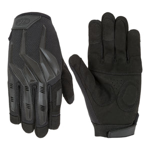 Die Highlander Raptor Gloves, hier in der Farbe Black, sind robuste, leichte und langlebige Handschuhe mit Gummi-Aufprallschutz an Rücken, Knöcheln und Fingern. Die Handschuhe haben verstärkte Flächen aus Wildleder auf der Handfläche, Finger und Daumen, sowie Touchscreen-Technologie in den Zeige- und Mittelfinger. Sie sind für einen harten Arbeitstag geeignet, da sie schnell trocknen und atmungsaktiv sind.