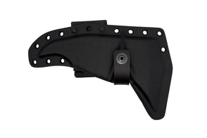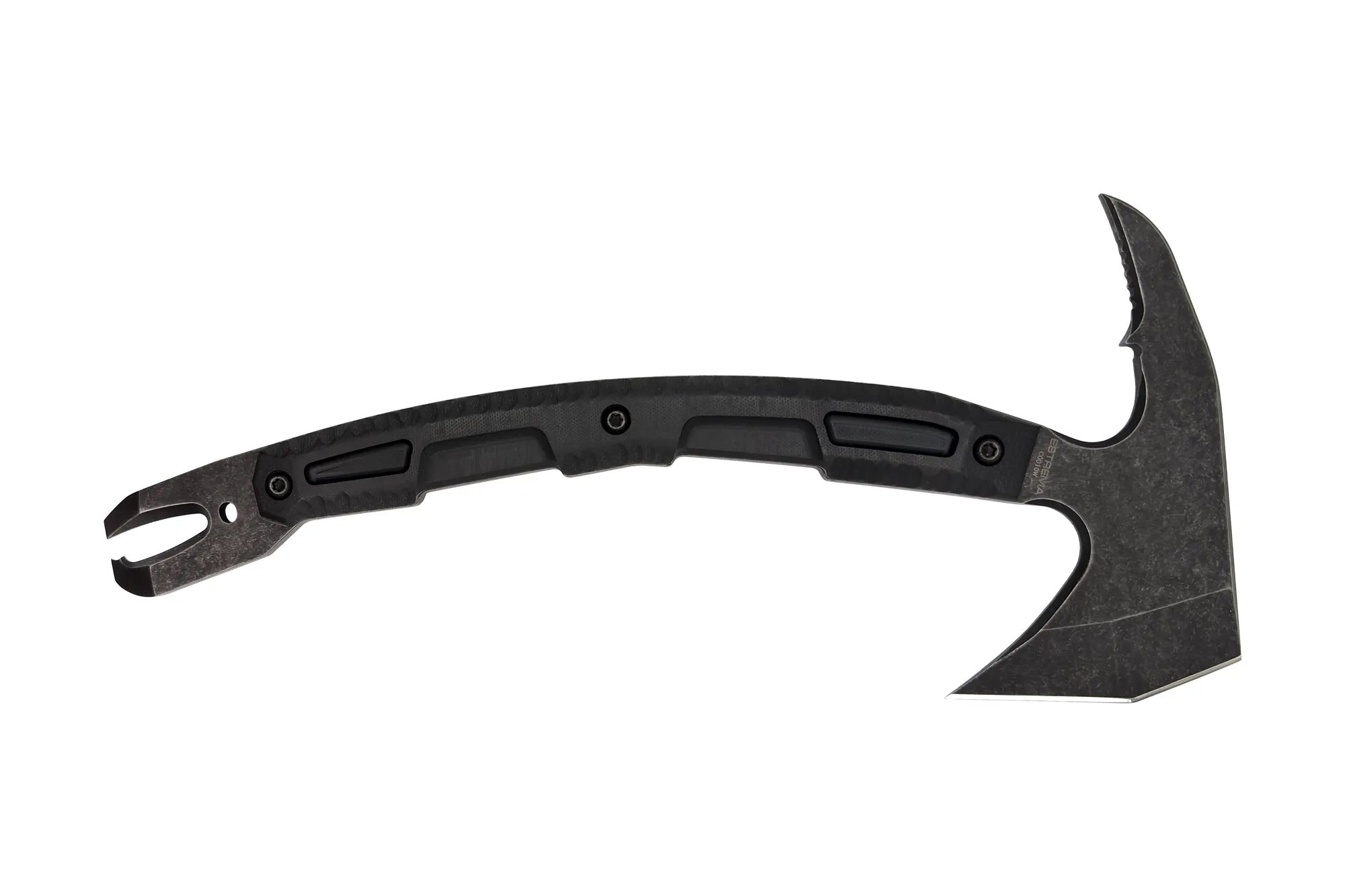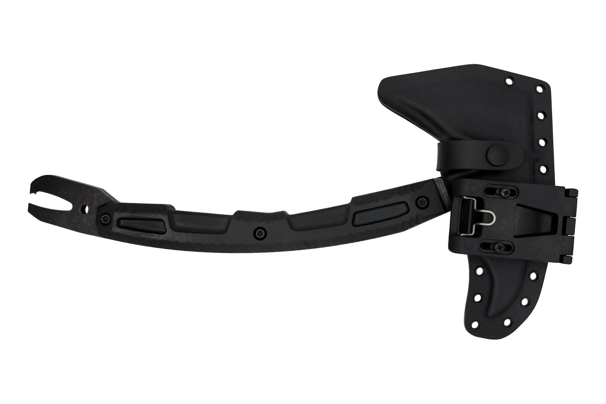 Der Griff aus G10‑Material ist ergonomisch und durchdacht gestaltet: Eine Vollgriffhaltung bietet klassischen Komfort, eine engere Griffhaltung ermöglicht gezielte Nahbereichs‑Einsätze. Am Griffschaft befindet sich zudem ein multifunktionaler Teil, der als Brechwerkzeug, Lever oder Crowbar genutzt werden kann – ideal für Rettungs‑ oder Spezialsituationen. Das Set wird mit einer ambidextrous Kydex‑Scheide geliefert, die vielseitige Tragemöglichkeiten erlaubt.