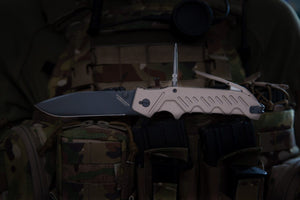 • Spezialfunktionen: Wolframkarbid‑Glasbrecher, Marlin‑Spike feststellbar, klappbares Rettungswerkzeug/Belt‑Cutter