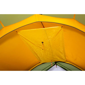 Im Innern des Vorzelts sorgen diverse Mesh-Taschen für Ordnung. Der Seiteneingang kann optional auch nur durch die transparente Mesh-Türe geschlossen werden. So ist der Blick nach draussen frei und der Innenraum wird dabei optimal durchlüftet. Die grosszügigen Türen zum Innenzelt können schnell und einfach in den Mesh-Taschen verstaut werden. An der Zeltdecke bietet die integrierte Gear Loft zusätzlichen Stauraum für Kleider oder andere Gegenstände und kann bei Nichtgebrauch ganz einfach mit einer Kordel weggezurrt werden.