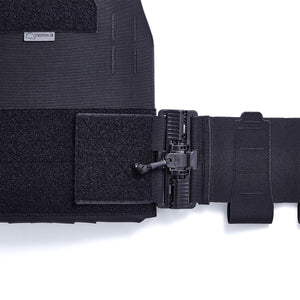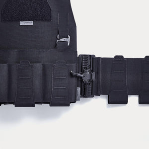 Der Cummerbund wird mittels dem Klett-System des ROC-Adapters an dem Plattenträger montiert. Die Quick-Release 2M ROC-Schnallen eröffneen Dir als Träger die Möglichkeit, den Plattenträger im Notfall schlagartig öffnen zu können. Zudem stellst Du Deinen Plattenträger nur einmal auf Deinen Körperumfang ein und musst zum An- und Abziehen nur noch die Schnellverschlüsse betätigen. Die Placards müssen beim An- und Ablegen des Plate Carriers somit nicht mehr abgenommen werden. Auf der Plattenträger-Rückseite wird der Cummerbund mittels Klett-System befestigt. Am Ende vom Cummerbund befinden sich 7 cm breite Slots, ideal für kleinere Ausrüstungsgegenstände z.B. Tourniquets. Diese Einschübe sind unten geöffnet, sodass das Tourniquet auch von unten entnommen werden kann. Der vordere Einschub entfällt bei dieser ROC-Verschluss-Variante.