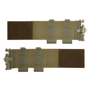 Der Cummerbund wird mittels dem Klett-System des ROC-Adapters an dem Plattenträger montiert. Die Quick-Release 2M ROC-Schnallen eröffneen Dir als Träger die Möglichkeit, den Plattenträger im Notfall schlagartig öffnen zu können. Zudem stellst Du Deinen Plattenträger nur einmal auf Deinen Körperumfang ein und musst zum An- und Abziehen nur noch die Schnellverschlüsse betätigen. Die Placards müssen beim An- und Ablegen des Plate Carriers somit nicht mehr abgenommen werden. Auf der Plattenträger-Rückseite wird der Cummerbund mittels Klett-System befestigt. Am Ende vom Cummerbund befinden sich 7 cm breite Slots, ideal für kleinere Ausrüstungsgegenstände z.B. Tourniquets. Diese Einschübe sind unten geöffnet, sodass das Tourniquet auch von unten entnommen werden kann. Der vordere Einschub entfällt bei dieser ROC-Verschluss-Variante.