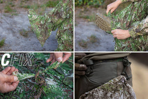 Tarnüberzüge in der Farbe CONCAMO green für die Beine. Inklusive angenähtem Schuhtarn. Dieser kann bei Nichtgebrauch nach oben gerollt werden. Mehr dazu im Produktvideo.
