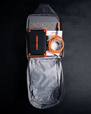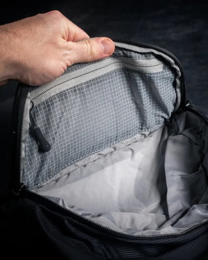 Das geräumige Hauptfach bietet ausreichend Platz für EDC-Ausrüstung, Tablet und persönliche Gegenstände. Mehrere Innenfächer und Organisationsbereiche ermöglichen eine strukturierte Aufbewahrung und schnellen Zugriff. Ein separates, verdecktes Fach erlaubt das diskrete Tragen entsprechender Ausrüstung und ist ergonomisch zugänglich.