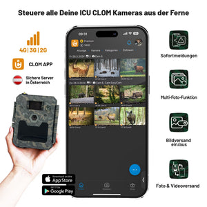 Entdecken Sie unser Spitzenmodell, die ICU CLOM Cam 6 - die perfekte Wahl für anspruchsvolle Anwendungen und von Jägern für Jäger entwickelt. Mit modernsten Funktionen bietet diese Kamera Qualität und Innovation in einem kompakten Paket. Die neue Kamera verfügt über eine 30 % bessere Signalstärke, Full-HD-Nachtsicht und die Möglichkeit, sofortige Befehle per SMS an die Kamera zu senden, sodass Sie bei Bedarf kommunizieren können und nicht auf den nächsten Einwahlzyklus warten müssen.