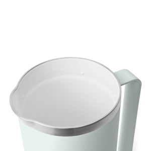 Der praktische Deckel mit Ausgiessöffnung ermöglicht ein kontrolliertes und tropffreies Einschenken. Der grosse, stabile Griff sorgt für eine sichere Handhabung, selbst wenn der Pitcher vollständig gefüllt ist.