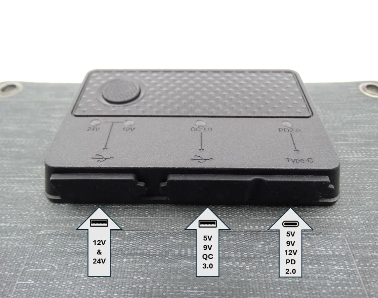 Des cellules solaires monocristallines très efficaces assurent un rendement énergétique maximal, tandis que le boîtier résistant aux intempéries et aux salissures offre une protection même dans des conditions changeantes. Grâce au support intégré et aux œillets métalliques, le panneau peut être orienté et fixé de manière flexible - sur un sac à dos, une tente ou un terrain de camping.