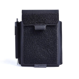 Le discret Note Pouch TERRA B® de couleur noire est fabriqué en CORDURA® 500 den laminé. Grâce à ce design découpé au laser qui réduit la matière et le poids, le Note Pouch est idéal comme organiseur low-profile pour le transport vertical de blocs et de notes.