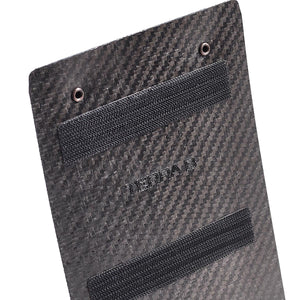 Des bandes Velcro sont prévues à cet effet à l'arrière. Sur la surface du clipboard, tu peux sans problème écrire une note importante. La pince noire mate maintient les notes en place.Le matériau utilisé, le Curv®, est une matrice tissée à haute densité extrêmement résistante à l'usure et à l'abrasion. En même temps, il est flexible et s'adapte de manière optimale à une éventuelle flexion de la pochette lorsqu'elle est portée sur le corps.