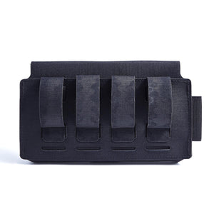 Le grand compartiment principal permet des dimensions allant jusqu'à 17 cm x 12 cm, par exemple pour le bloc-notes BOWI de Berlin. Il est également possible de transporter un téléphone portable. La Note Pouch peut également être utilisée comme porte-objets pour de petites pièces d'équipement (p. ex. piles, boussole, etc.) ou du matériel sanitaire. Une grande surface velcro sur la face avant de la pochette, qui se prolonge sur la languette de fermeture, permet de fixer des patchs ou autres. Grâce aux boucles PALS situées à l'arrière, la Note Pouch peut être fixée en toute sécurité à tout système MOLLE standard. Il est également possible de choisir un système de fixation alternatif, à savoir un crochet et un velcro au dos. Un simple passant en caoutchouc supplémentaire à l'extérieur du Note Pouch permet d'y glisser un stylo.