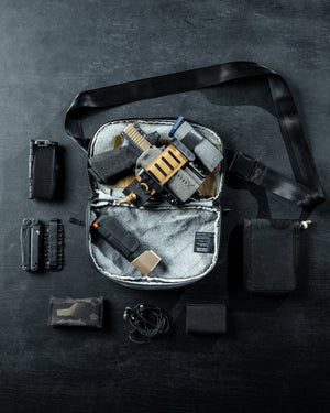 L'Eberlestock Fade Flex est une solution de transport flexible et discrète qui peut être portée aussi bien comme sacoche de hanche que comme sac crossbody. Avec une capacité de 180 pouces cubes (environ 3 litres), il offre suffisamment de place pour un pistolet à part entière et un équipement supplémentaire.