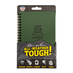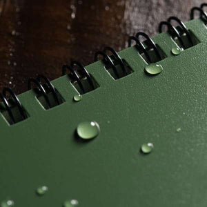 Papier tout temps : 64 pages (32 feuilles) en papier 32# "Rite in the Rain", qui repousse l'humidité et empêche l'encre de s'infiltrer.