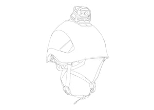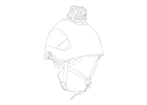 Système de fixation autocollant permettant d'installer une lampe frontale sur un casque sans gêner le mouvement d'orientation de la lampe.