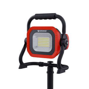 Le Nordride 4082-50 SECTOR 50 W R allie flexibilité, mobilité et qualité de lumière dans un projecteur de travail performant. Idéal pour les professionnels qui ont besoin d'une lumière fiable, réglable et sans scintillement sur les chantiers, à l'extérieur ou dans les ateliers - parfaitement adaptable grâce au changement de batterie, à la fonction Powerbank et à la possibilité d'utiliser un trépied.