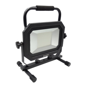 Grâce à l'angle réglable, au trou central pour trépied et au pied en H amovible, le projecteur peut être positionné de manière flexible - idéal pour les menuisiers, les peintres, les plâtriers et autres professionnels sur les chantiers, dans les ateliers ou lors d'événements. La protection IP65 et un câble en caoutchouc robuste de 5 m assurent une mobilité et une fiabilité à long terme.