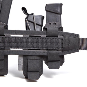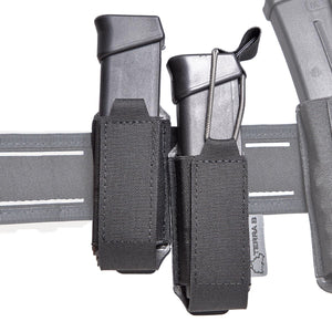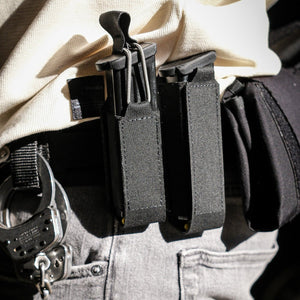L'insert cousu possède des propriétés remarquables grâce au matériau polyvalent Curv®: une robustesse extrême et une résistance exceptionnelle aux chocs, tout en étant très flexible et léger. Sa silhouette est nettement plus fine que celle des inserts ou des pochettes en matériau Kydex®. Grâce à la structure spéciale du matériau, il est en outre résistant à la rupture et ne se fragilise pas au froid.Le laminé CORDURA® découpé au laser donne à la pochette un aspect très plat et réduit son poids par rapport aux pochettes pour chargeurs de pistolets de nombreux autres fabricants. Grâce à cette utilisation optimale du matériau, elle peut être portée très discrètement sur ton gilet d'intervention ou à la ceinture, comme par exemple le TERRA B Belt Set. Grâce à la bande élastique robuste et élastique à l'avant, qui se resserre dans la partie inférieure, la Mag Pouch offre un maintien sûr et s'adapte parfaitement aux différents chargeurs. L'arrière avec des boucles PALS permet une fixation via le système MOLLE ou directement sur des ceintures de 45 mm de large, comme notre TERRA B Duty Belt.
