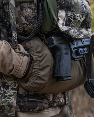 Le panneau MOLLE d'Eberlestock Recon est une extension polyvalente pour le harnais Recon Modular Bino. Il permet de fixer horizontalement des sacs compatibles MOLLE comme le Recon Bearspray Pouch ou le Recon Rangefinder Pouch directement sous le compartiment des jumelles. Il sert en outre de plate-forme pour les holsters compatibles MOLLE afin de porter un pistolet en toute sécurité et à portée de main sur le Bino Harness.
